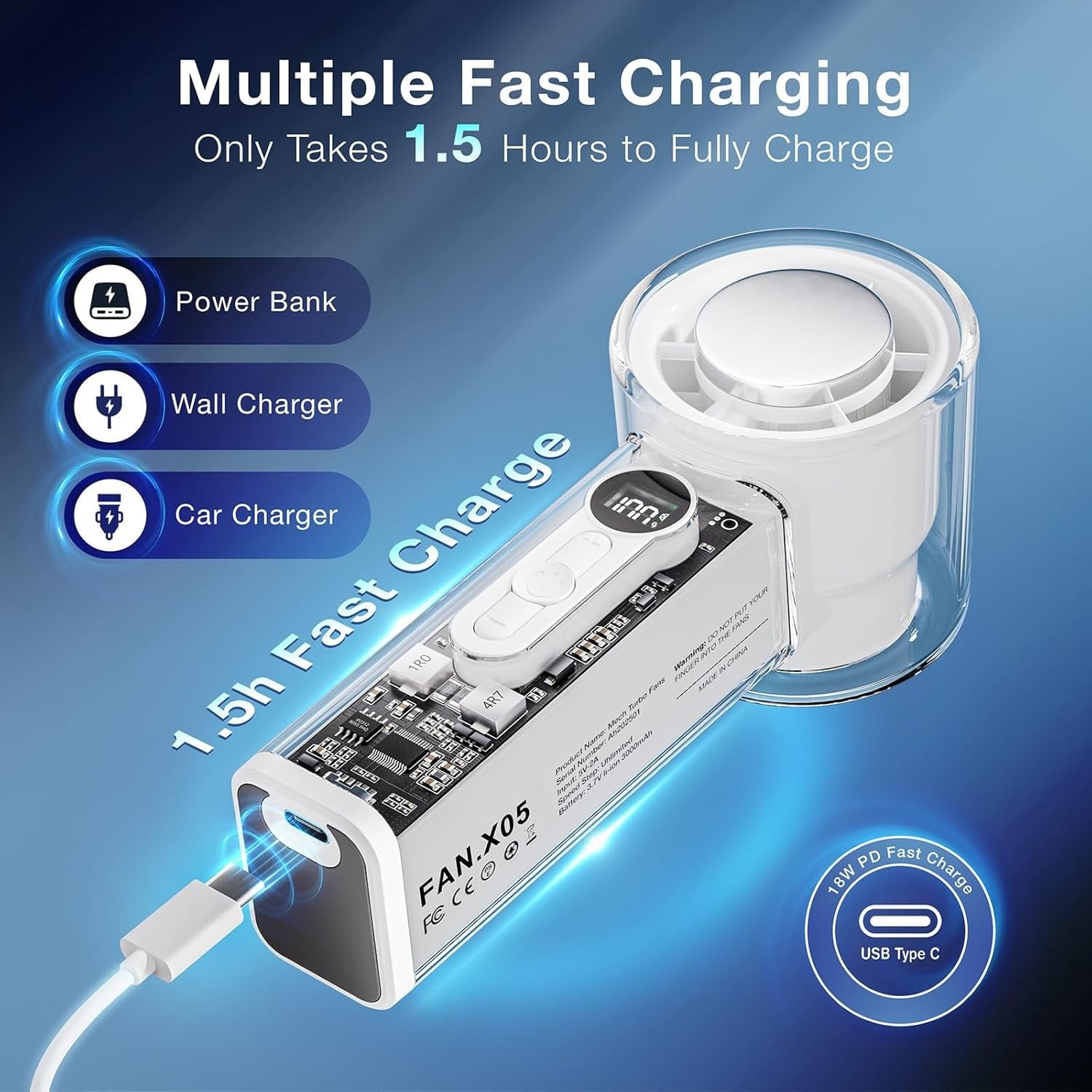 FAN-X05 High Speed Cooling Fan – A sleek, handheld turbo fan delivering powerful airflow in a compact, bladeless design perfect for on-the-go cooling.